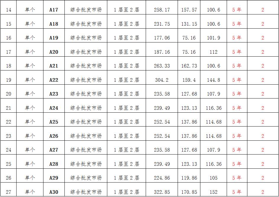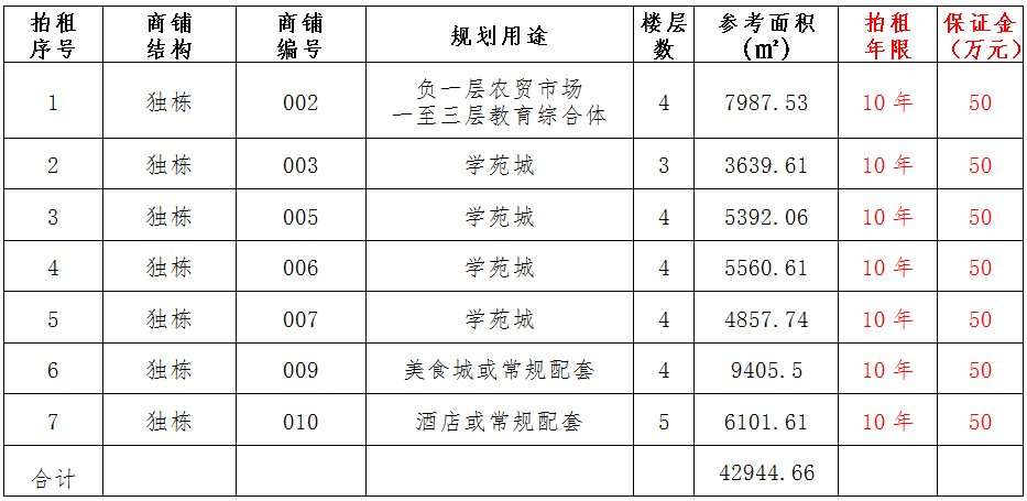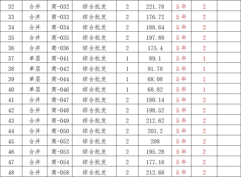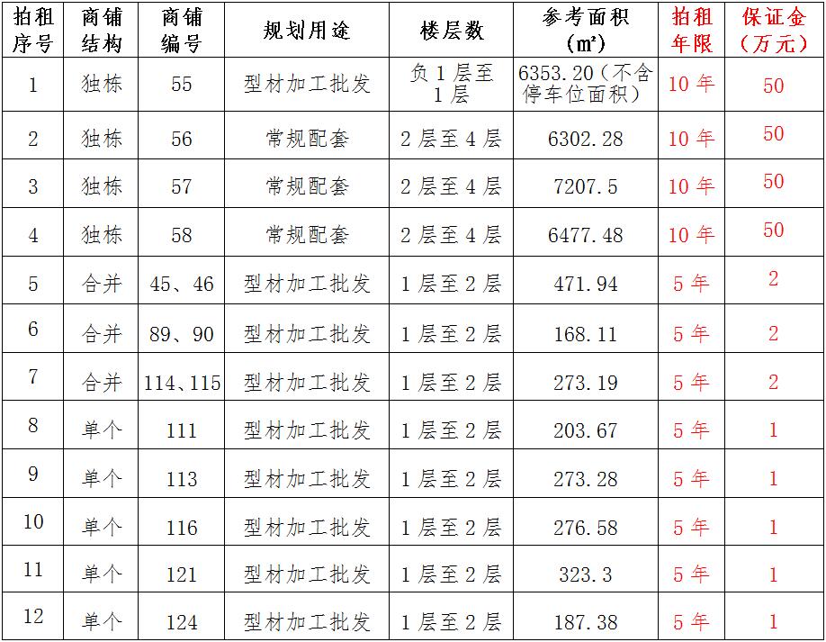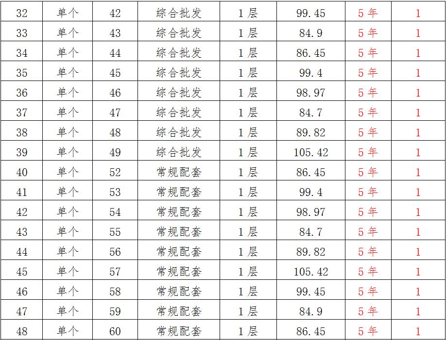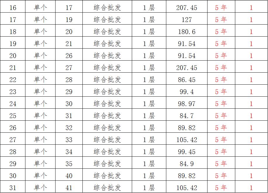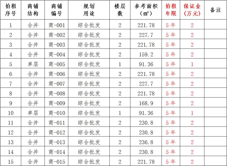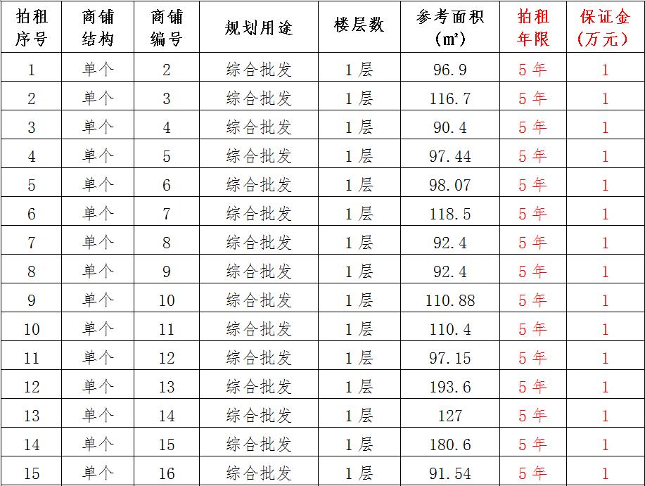 (一)拍租位于鎮(zhèn)雄縣南臺(tái)街道呢嚕坪安置點(diǎn)7棟獨(dú)立商鋪使用權(quán)。以棟為單位拍租。詳見(jiàn)下表:具體面積以現(xiàn)狀實(shí)測(cè)為準(zhǔn)。