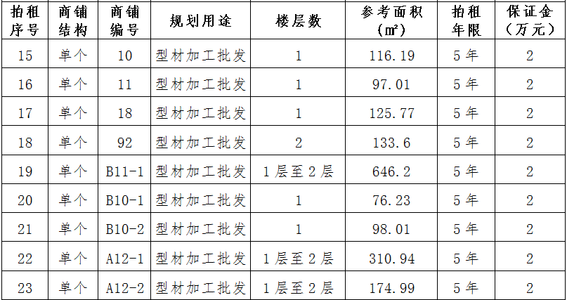 (三)拍租位于鎮(zhèn)雄縣舊府街道魯家院子安置點(diǎn)24間商鋪使用權(quán)。以間為單位拍租。詳見下表: