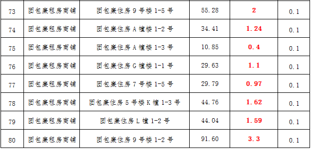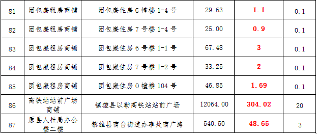 (三)拍租鎮(zhèn)雄縣城市運營管理有限公司國有門面3年期使用權,詳見下表: